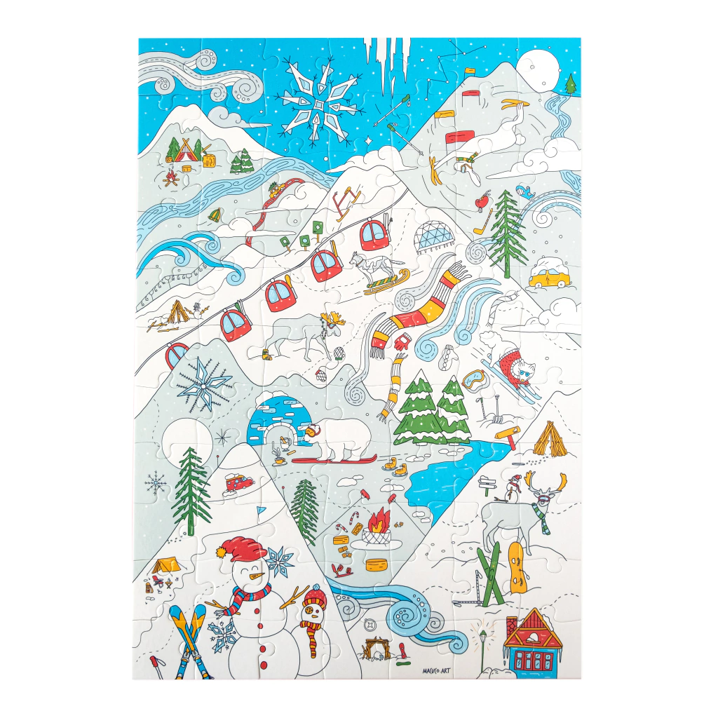 Puzzle Bifaz de 77 piezas que te llevará a embarcarte en un viaje repleto de nieve (Ideal para niños a partir de los 6 años)