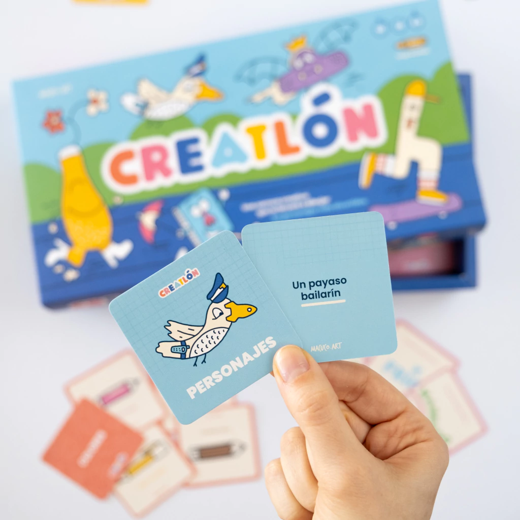 Incluye dos juegos complementarios —Creatlón y Dibujarte 2— que trabajan la creatividad desde distintos ángulos: velocidad, imaginación, observación y expresión artística.